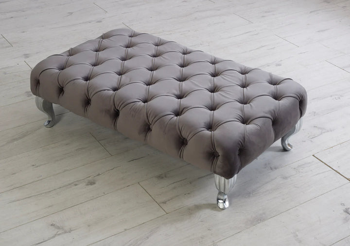 The Italian Velvet Chesterfield Sofa is a stylish piece incorporating a classic chesterfield design with modern angles.