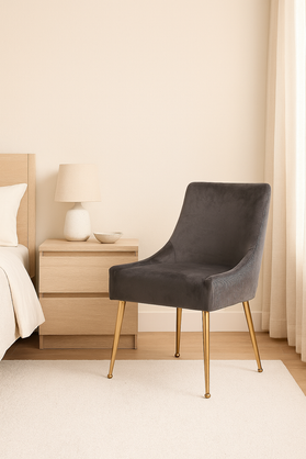 Milan Dining Chair Gold Handle Gold Legs Grey and Ivory